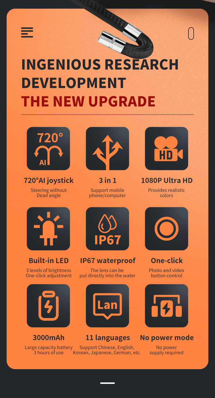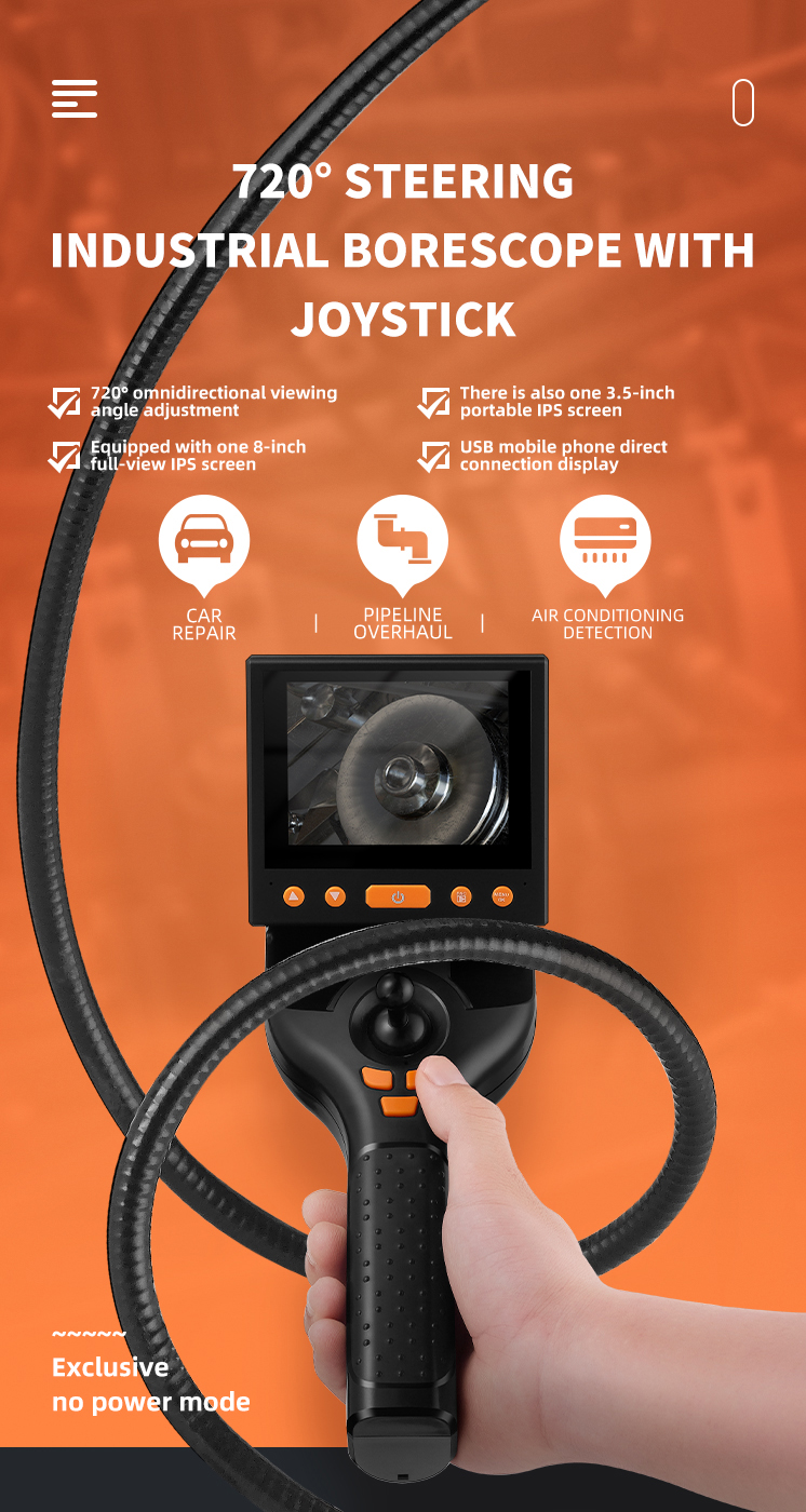 Камера-Эндоскоп для осмотра автомобиля, дисплей 720 дюйма, поворот на °