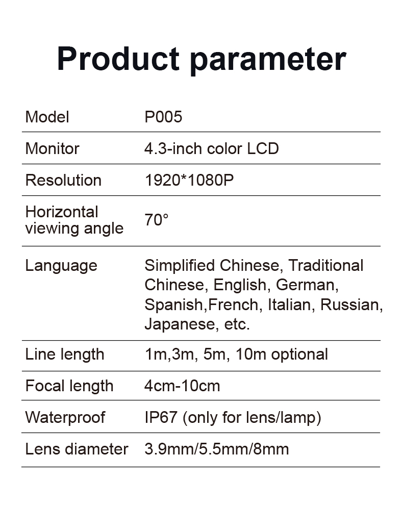 Камера-эндоскоп с 1080 пикселей и 4,3 дюймовым экраном