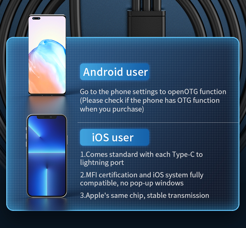 Поставляется с портом Type-C, микро-портом, портом IOS, совместим с 99% мобильных устройств на рынке