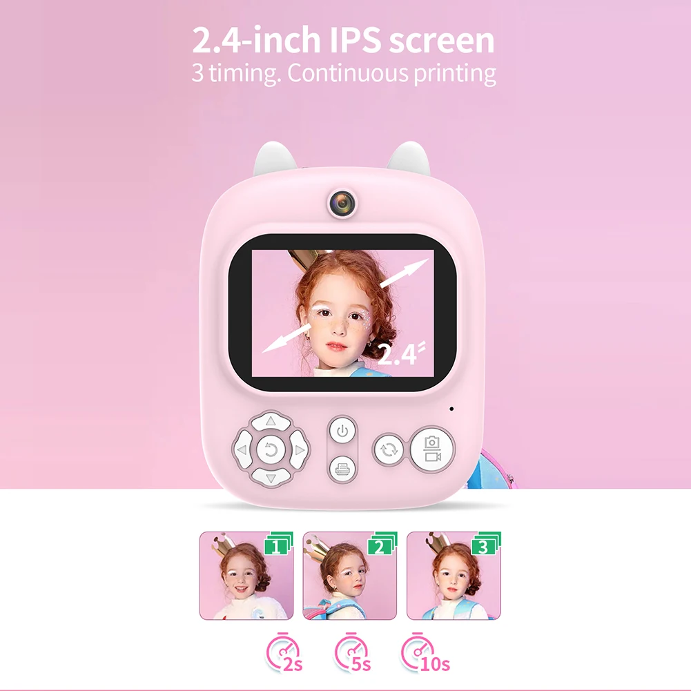 1. Мгновенная печать:В этой камере Мгновенной Печати используется технология термопечати, позволяющая детям снимать красочные фотографии или видео и Печатать Черно-белые фотографии для раскрашивания. С помощью этой функции дети могут наслаждаться мгновенным удовлетворением, видя, как их фотографии оживают в физическом формате.