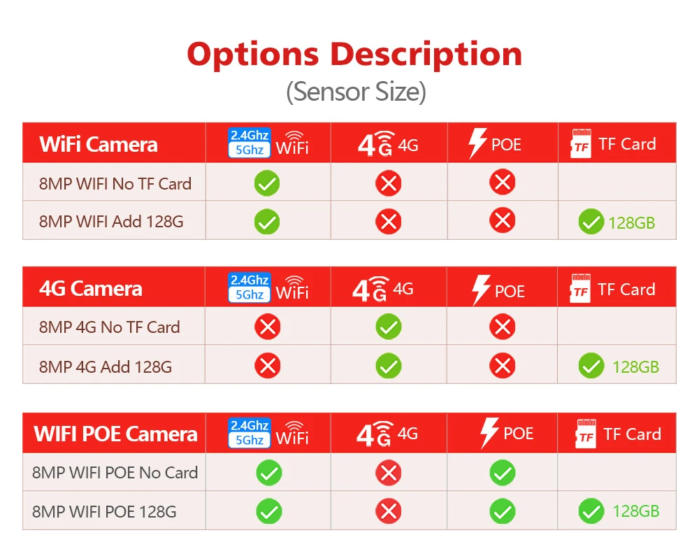 ● 4K 8MP WIFI / 4G / POE три варианта версии;