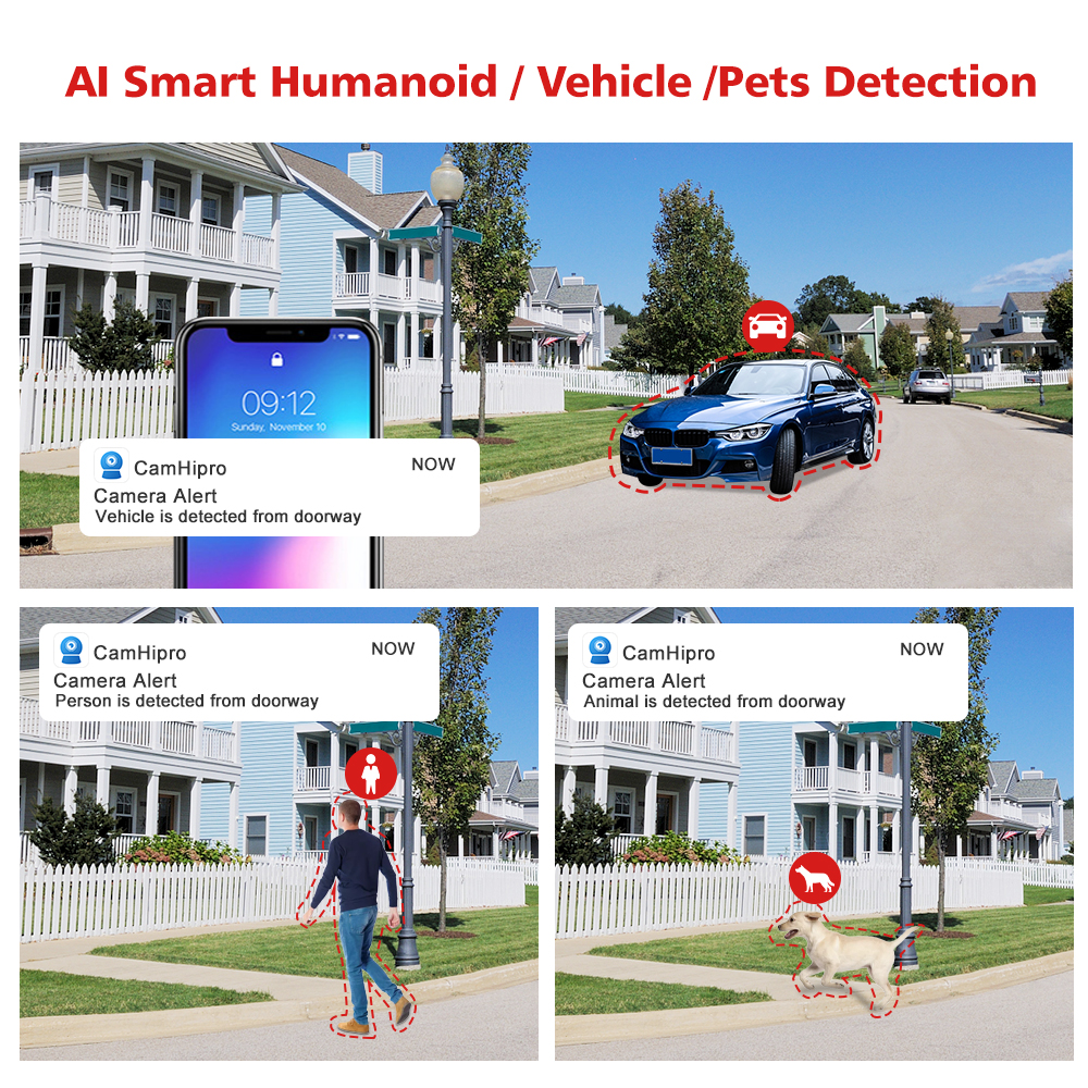 Быстро распознает цели гуманоидов/транспортных средств/домашних животных и немедленно отправляет уведомление на свой телефон только при срабатывании сигнала тревоги, что поможет вам отфильтровать раздражающие ложные предупреждения.