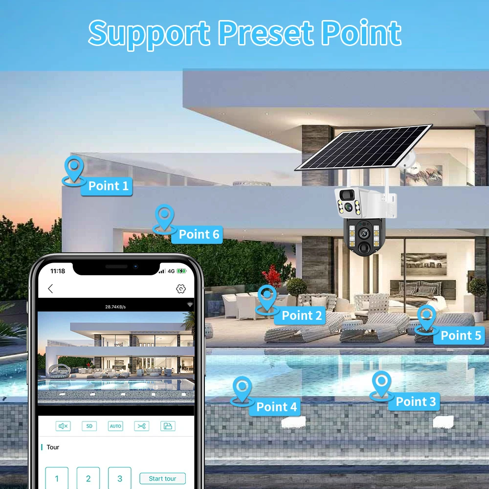 Встроенный модуль 4G позволяет камере поддерживать высокоскоростное соединение без сети Wi-Fi и получать доступ к Интернету в любое время и в любом месте. Версия 4G особенно подходит для использования на открытом воздухе и в отдаленных районах, обеспечивая неограниченные удобства. (Поддерживает только SIM-карту 3G/4G, а не соединение WIFI).