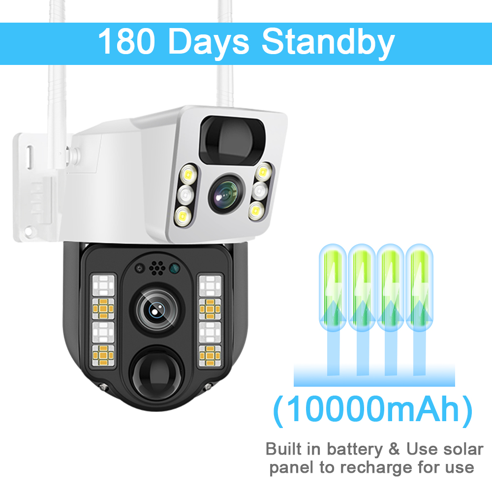 Наша Солнечная камера наблюдения встроена в Большую батарею емкостью 10000 мАч и имеет функцию солнечной зарядки для достижения 180 дней сверхдлительного режима ожидания, предоставляя вам Экологичное и эффективное решение для наблюдения. Будь то в отдаленных районах, местах без источника питания или местах с требованиями защиты окружающей среды, эта функция обеспечит вам непрерывную и бесперебойную защиту безопасности.
