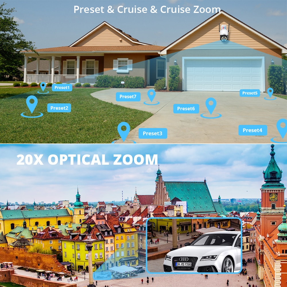 Эта наружная ip-камера строго реализует ваши настройки и переключается между различными зумами в разных заданных точках. Конечно, Круизная запись также будет поддерживать соответствующий зум.