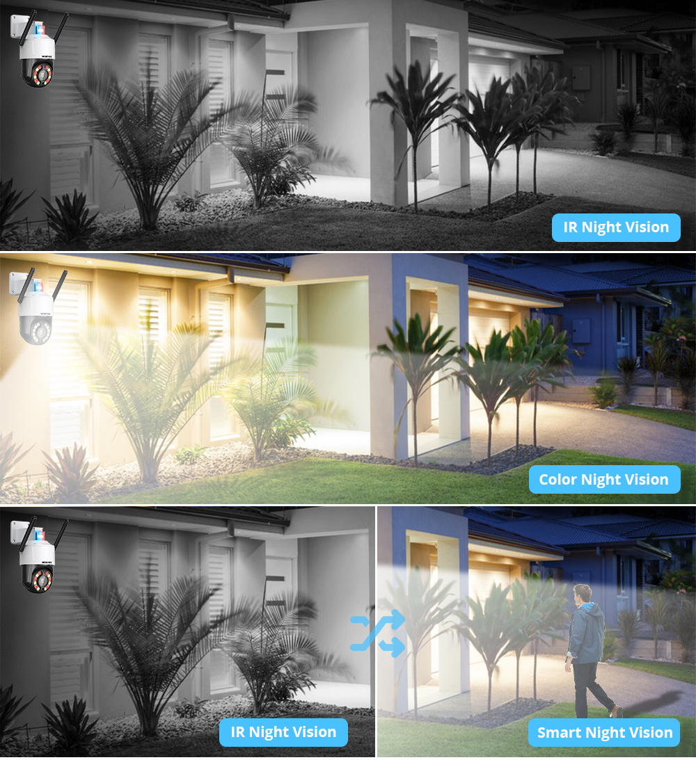 Поддержка инфракрасного ночного видения/цветного ночного видения/интеллектуального ночного видения три режима ночного видения