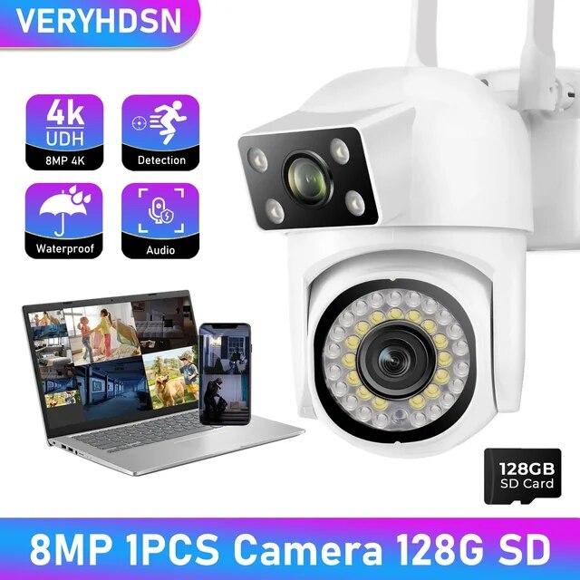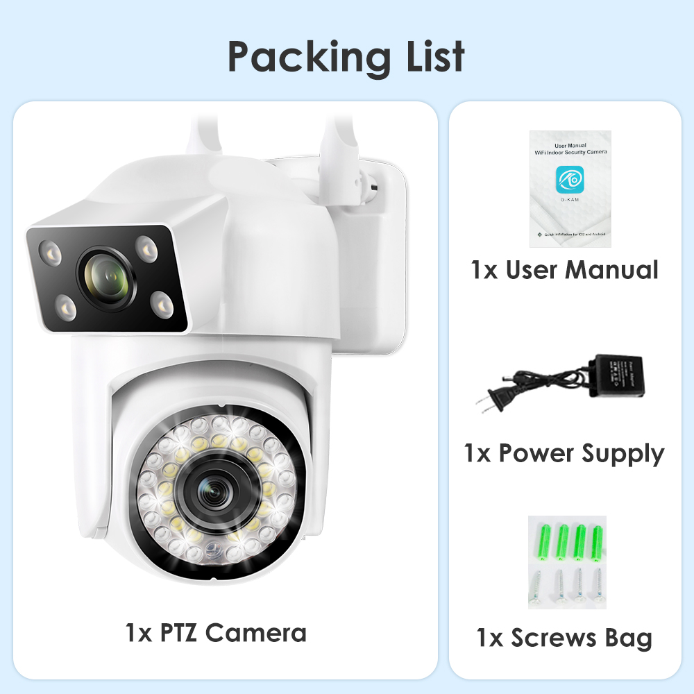 Камера наблюдения имеет конструкцию с двумя объективами с объективами 3,6 мм и 8 мм. Он включает в себя широкоугольный объектив 4 мм для наблюдения с близкого расстояния и с широким обзором, а также телеобъектив 8 мм. Пользователи могут переключаться между различными объективами для достижения различных визуальных перспектив по мере необходимости.
