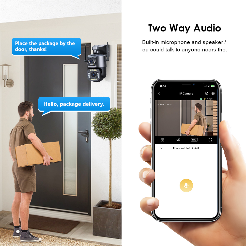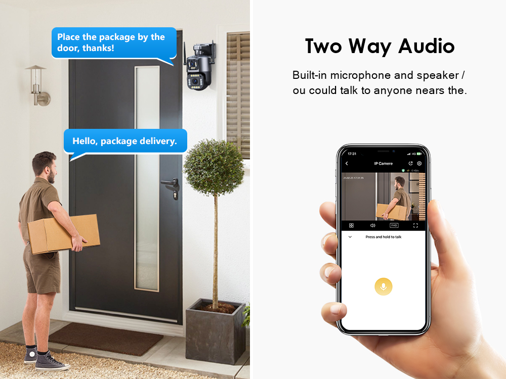 * Встроенный микрофон и динамик, поддержка видео в реальном времени, что позволяет разговаривать с посетителем в реальном времени, где бы вы ни находились.