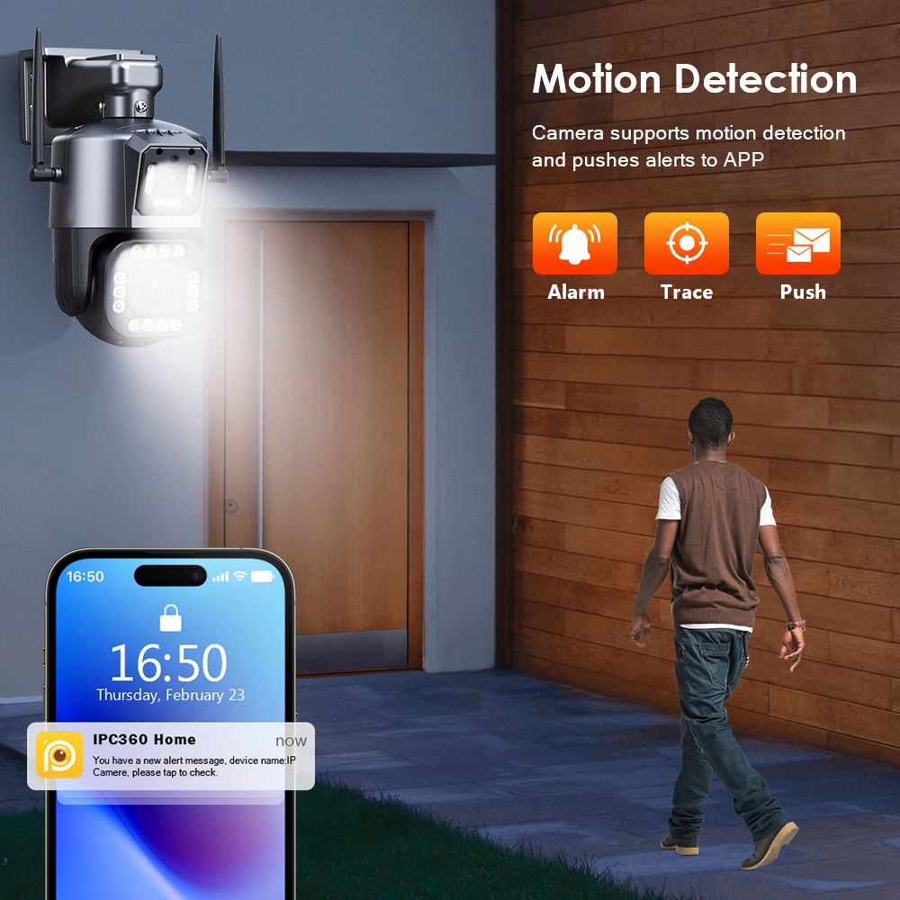 Камера использует новейший алгоритм AI, который может точно обнаруживать движения и отправлять вам уведомления через приложение, поэтому вам не нужно беспокоиться о безопасности своей зоны защиты.