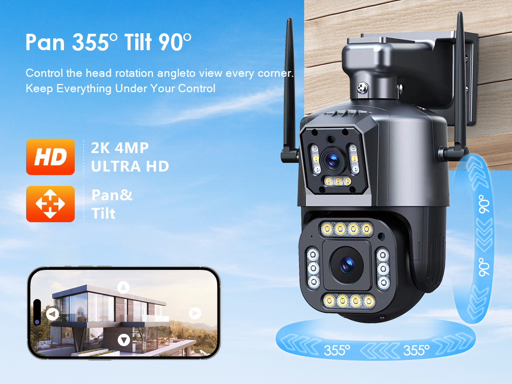 * Вы можете легко управлять камерой PT, поворачивая ее на 355 ° по горизонтали и 90 ° по вертикали, чтобы охватить каждый угол вашего дома.