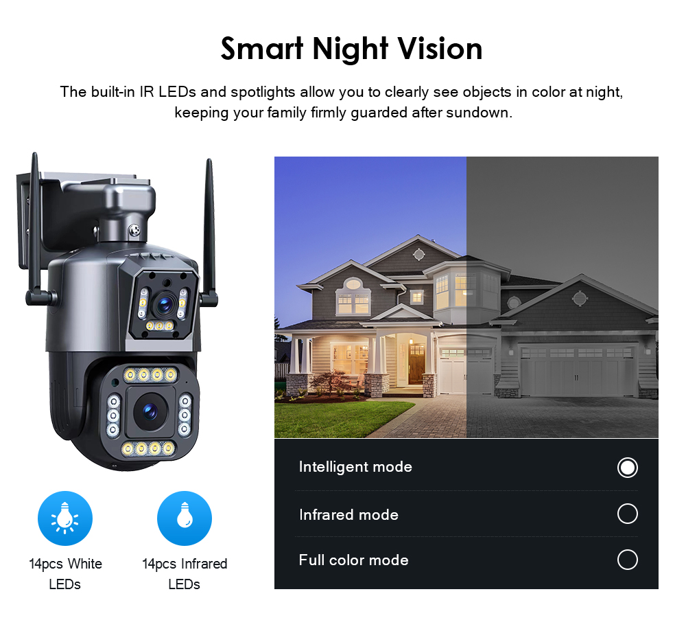 * Камера также может отображать красочное видение ночью, вы можете выбрать три ночных режима.