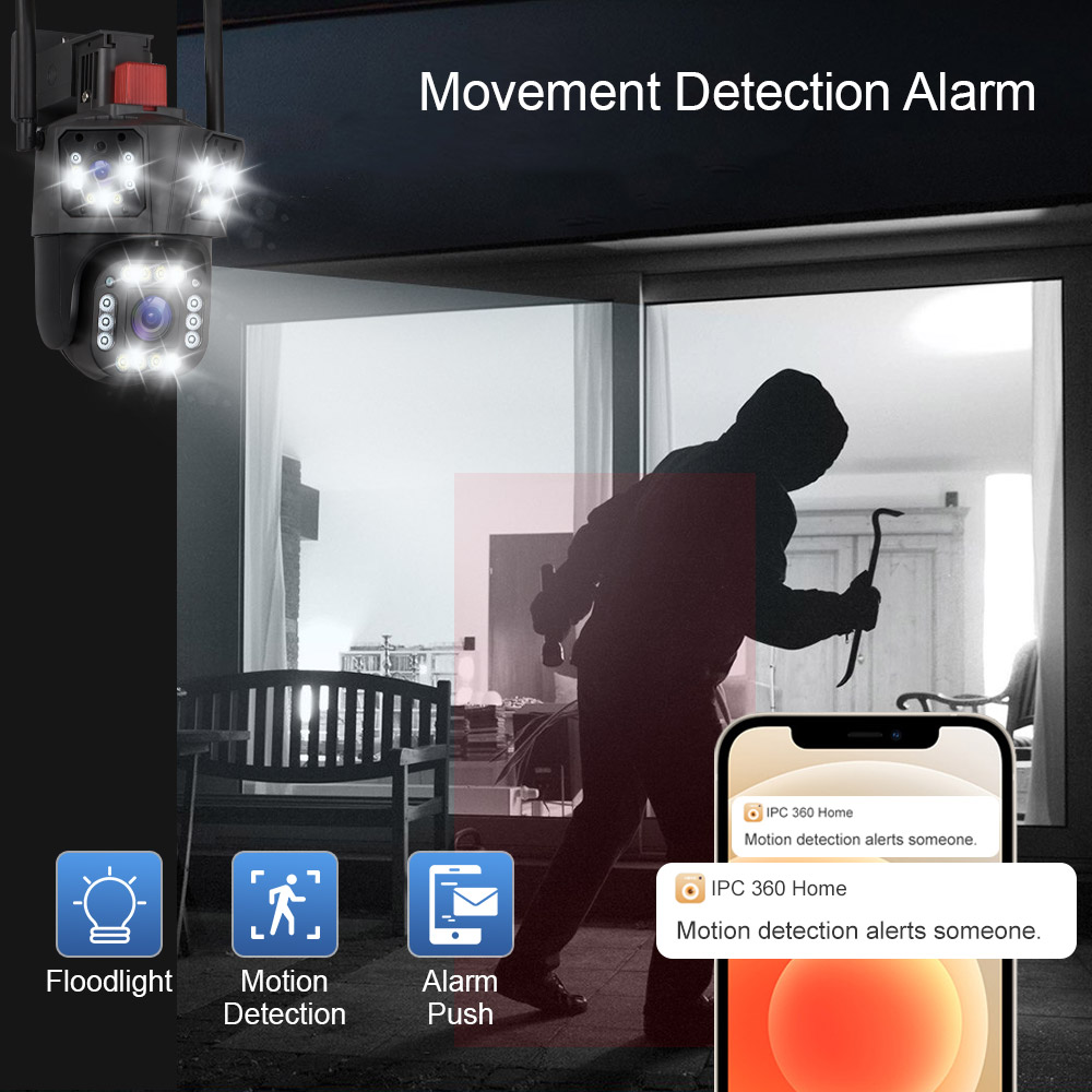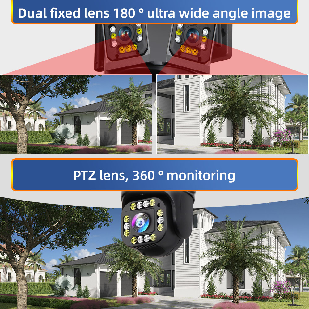Наружная Защитная камера Wi-Fi с тремя объективами может автоматически отслеживать движения людей в поле зрения.