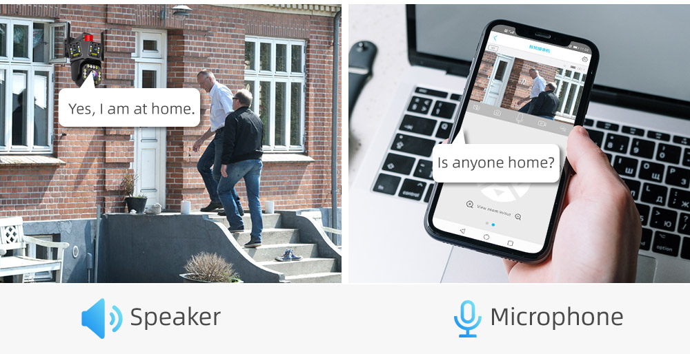 Беспроводные камеры видеонаблюдения могут напрямую общаться с кем угодно, кто находится рядом с вашим домом, через двустороннюю аудиосвязи в мобильных приложениях.