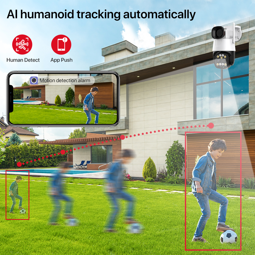 Камера Наружного видеонаблюдения H.265, 4K, 8 Мп, 4G, Sim-карта, Wi-Fi, 2,8 мм-8 мм, двойной объектив, 10-кратный зум, IP-камера с ИИ-отслеживанием звука