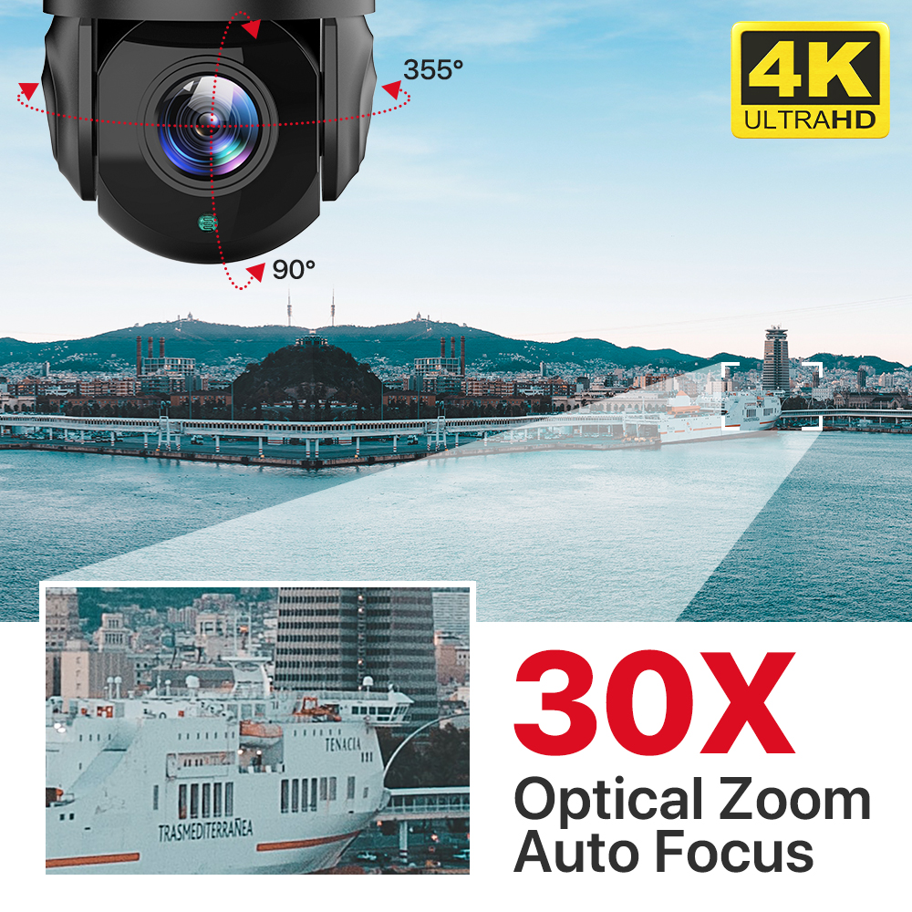 Камера Наружного видеонаблюдения с автоматическим отслеживанием, водонепроницаемая IP-камера с 30-кратным оптическим зумом, 8 Мп, 4K, HD, POE, PTZ, IP66, XMeye, P2P