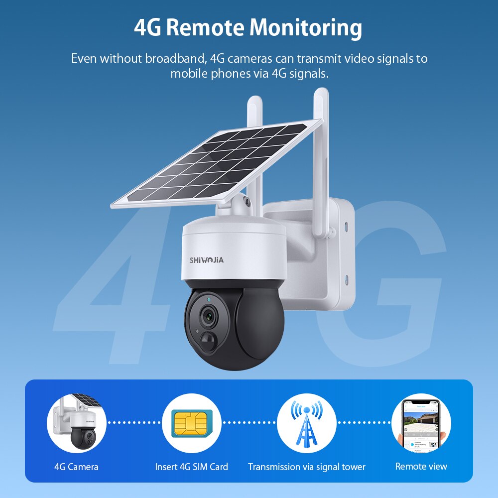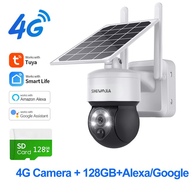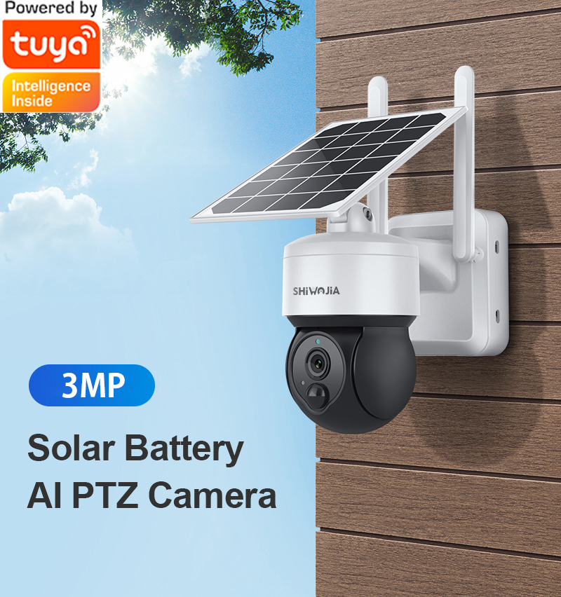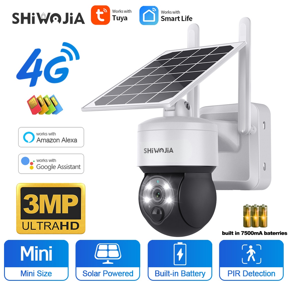 SHIWOJIA Tuya Солнечная камера 4G SIM 3MP WIFI солнечная панель с питанием от солнечной батареи, камера безопасности, наружная PTZ камера наблюдения, PIR защита безопасности