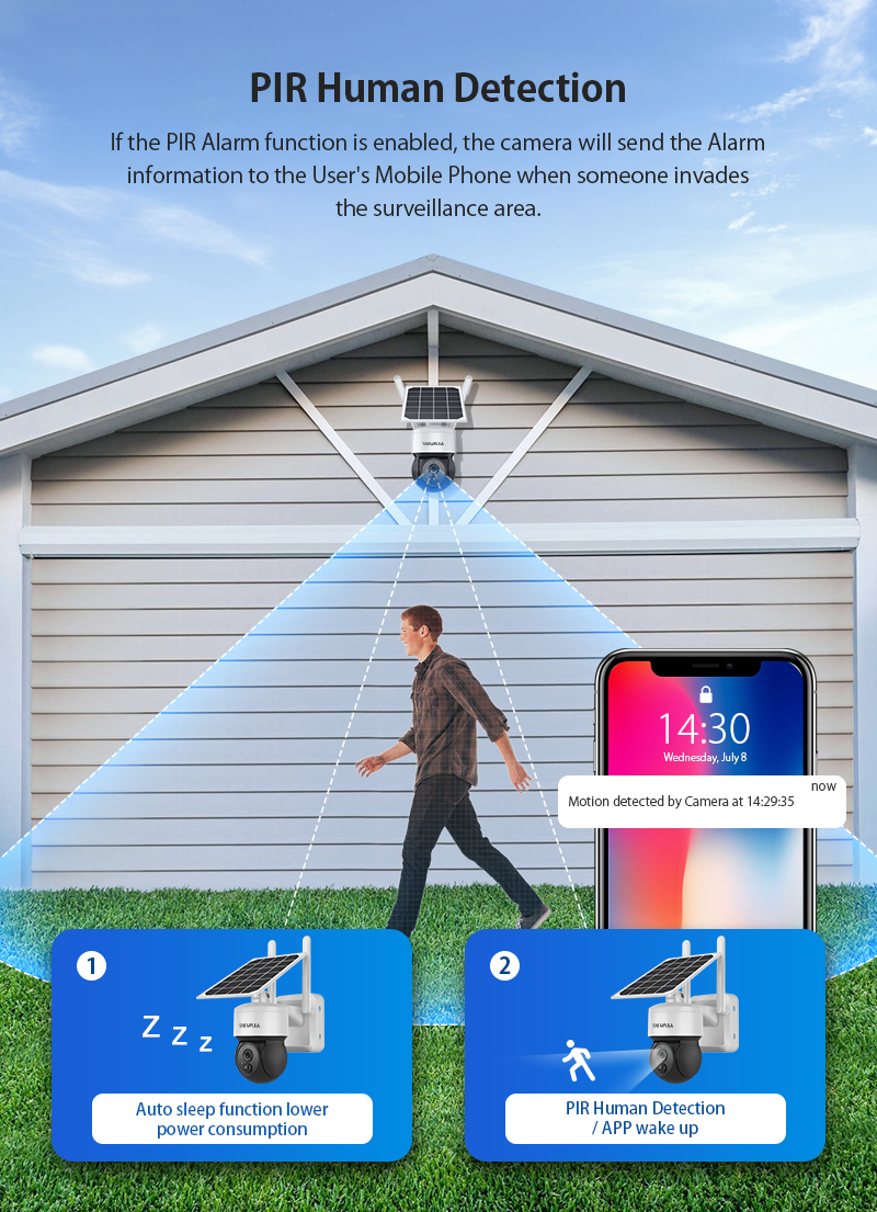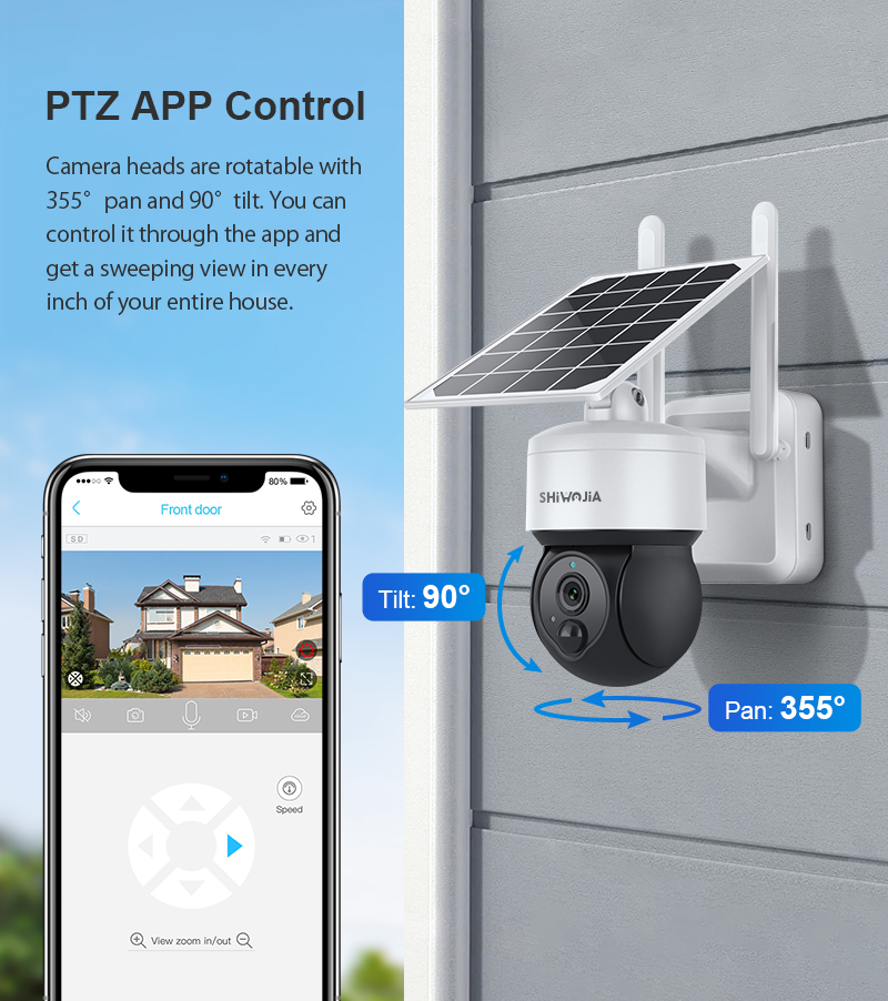 * Эта камера безопасности батареи ptz использует высокочувствительный датчик движения PIR и обнаружение AI для двойного управления и уменьшения ложных сигналов тревоги,