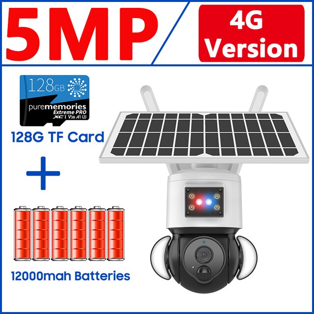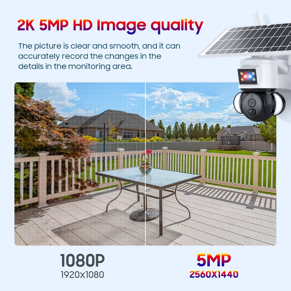 Камера Наружного видеонаблюдения ZAOMIYOS на солнечной батарее, 4G, 2K, 5 Мп, HD, Wi-Fi, 12000 мАч