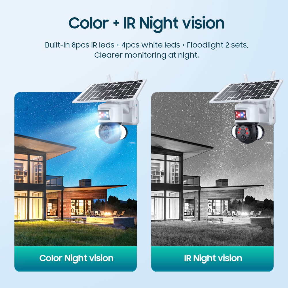 * Эта камера безопасности поддерживает два режима ночного видения, ИК ночного видения в черном и белом, цветовое ночное видение с цветным насыщенным видом.