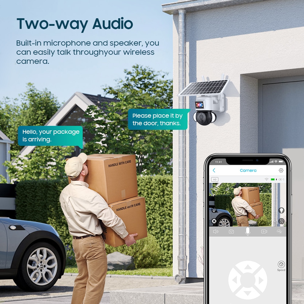 * Зеленая солнечная энергия, эта беспроводная камера видеонаблюдения использует возобновляемую и богатую солнечную энергию. Вам больше не придется менять аккумулятор самостоятельно или платить за электричество, экономя ваше время и деньги.