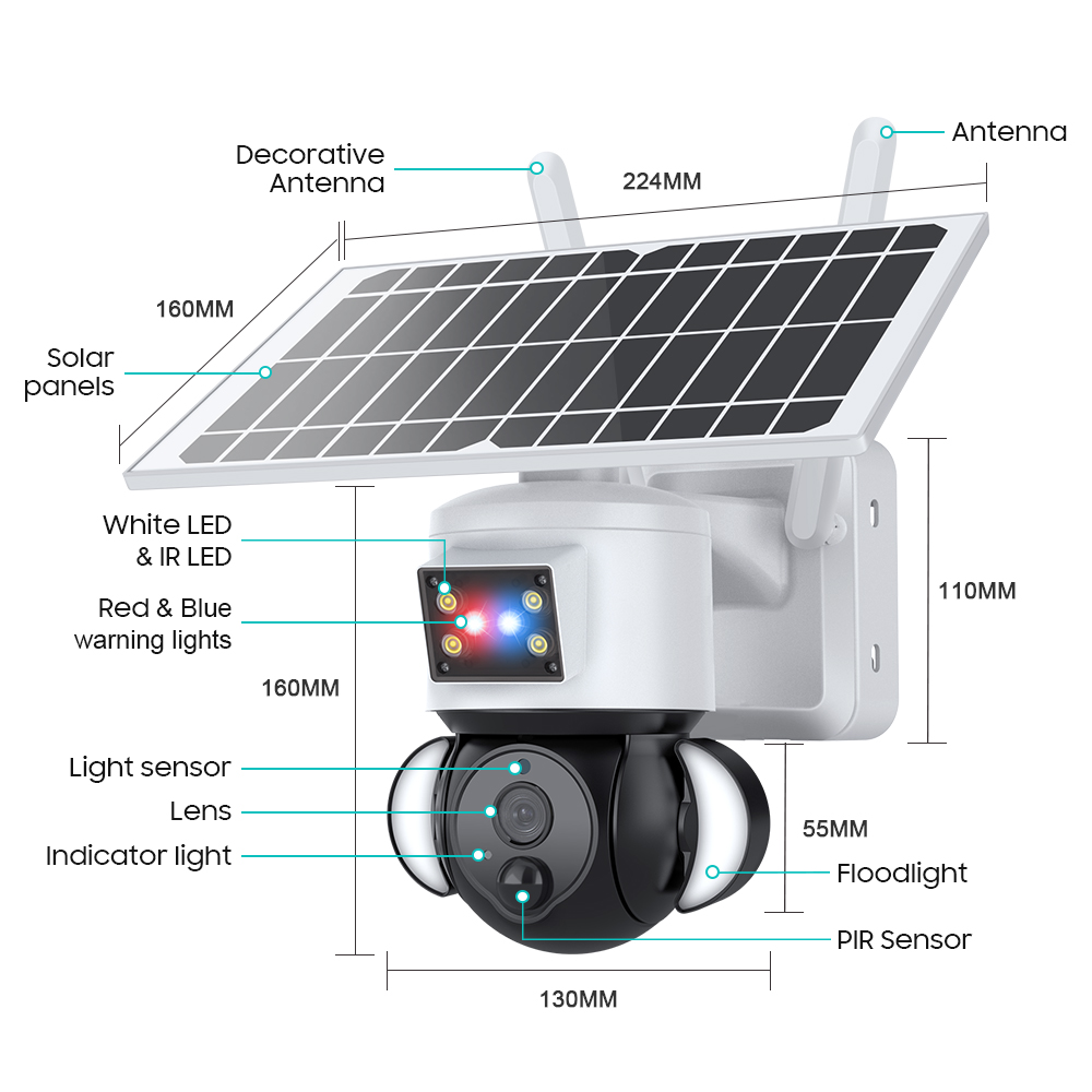 * Встроенные ИК-светодиоды 8 шт. + белые светодиоды 4 шт. + прожектор 2 комплекта, более четкий контроль в ночное время.