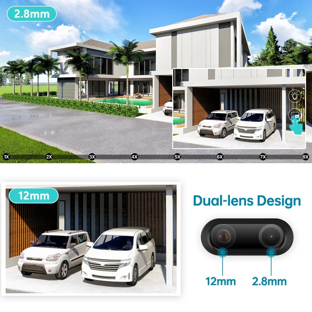 Двойной объектив 3,6 мм + 12 мм для просмотра на большом расстоянии.