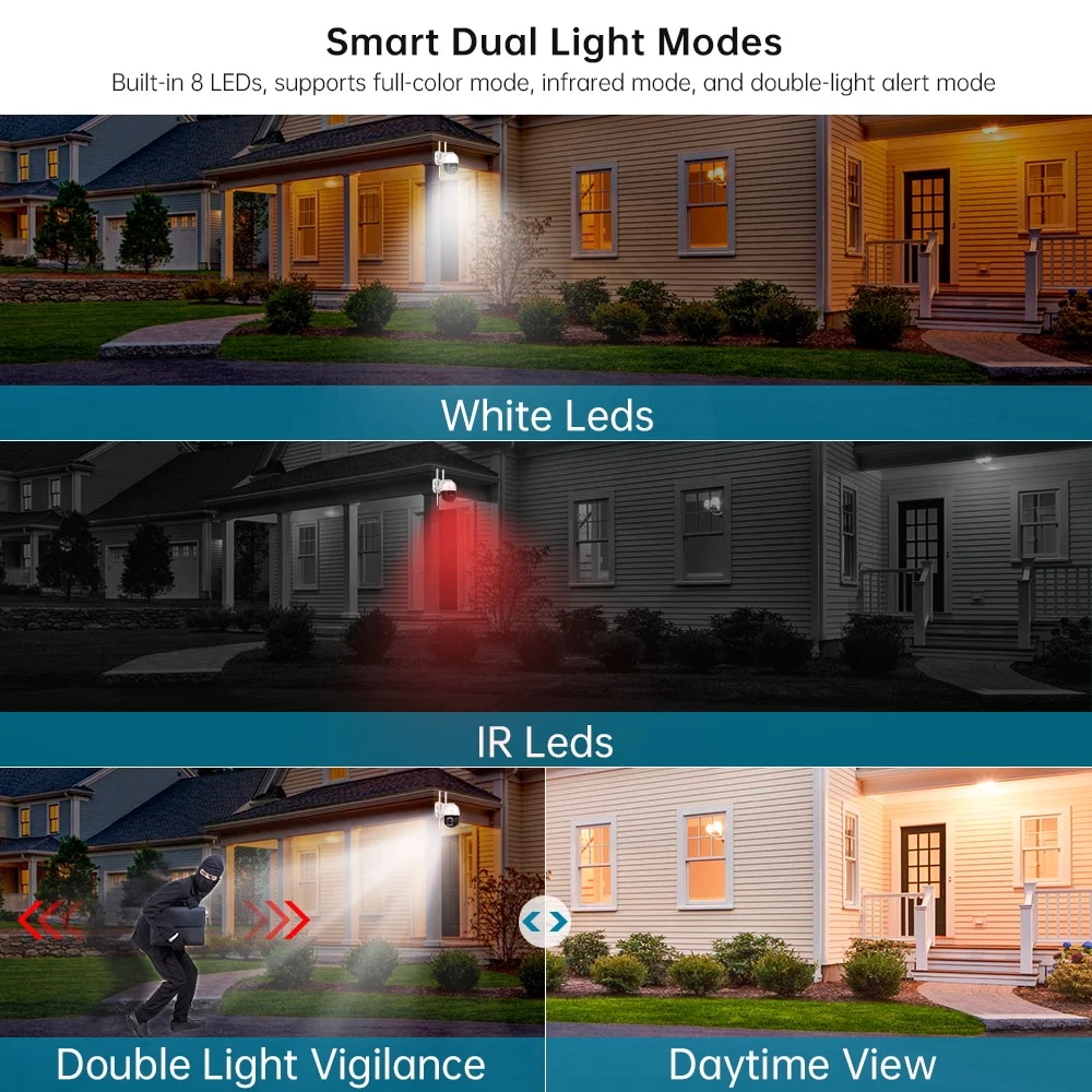 (Инфракрасное ночное видение отображается, когда объект не движется, и белый свет включается для переключения в полноцветный режим после обнаружения движения).