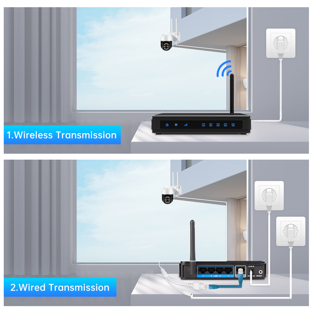 Питание от адаптера DC12V позволяет подключить камеру к сети Wi-Fi. Вы можете настроить Wi-Fi-соединение камеры или поиск по локальной сети с помощью сетевого кабеля, подключенного к маршрутизатору, работать только с Wi-Fi 2,4G (не поддерживает 5G).