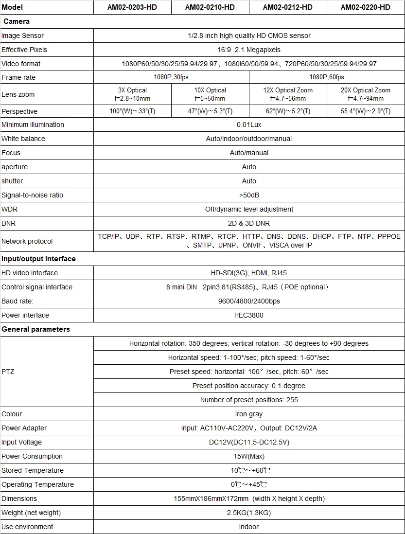 ● Зум: 3X/10X/12X/20X оптический зум опционально