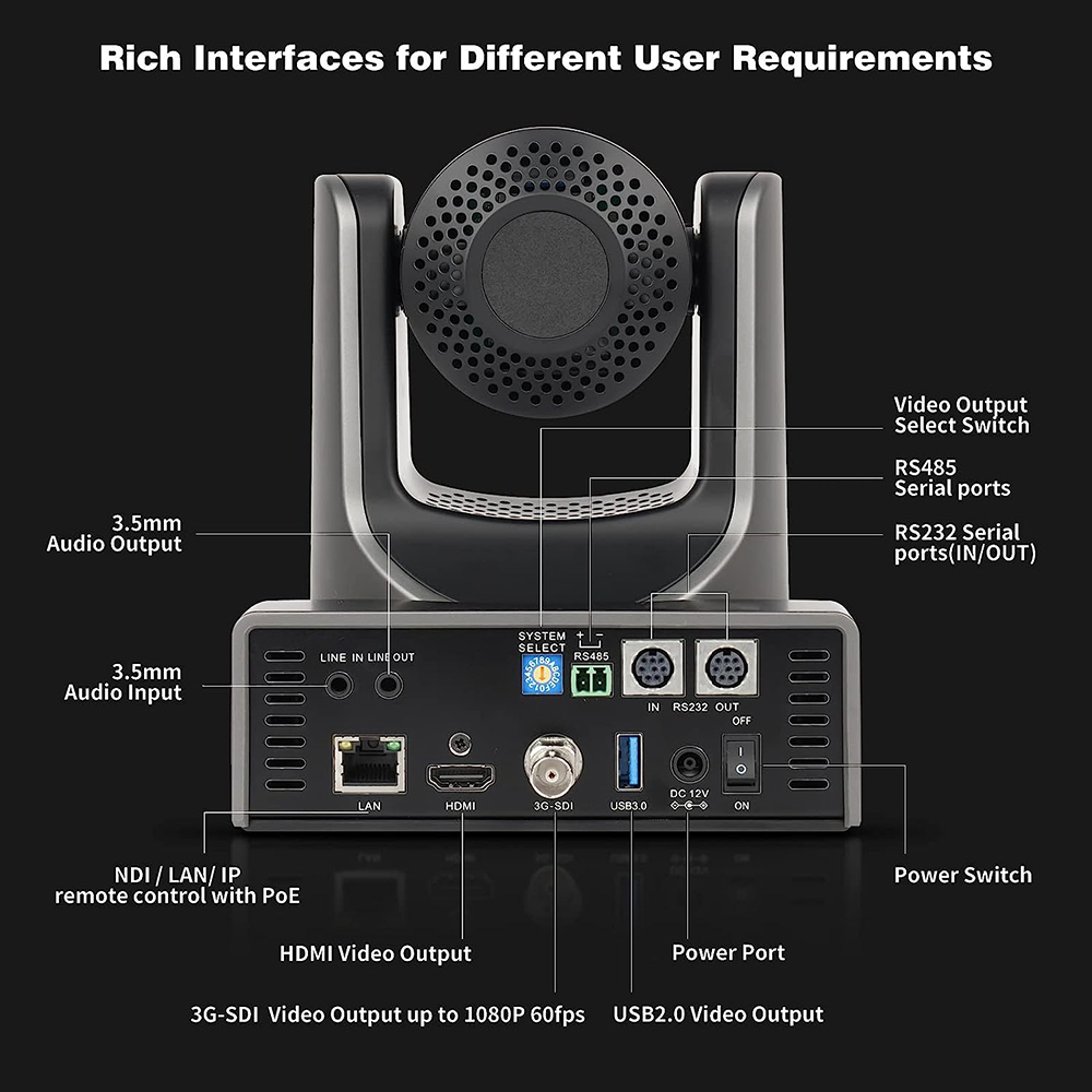 PTZ-камера нового поколения PoE | Отслеживание с искусственным интеллектом | 20-кратный оптический зум | NDI | HB с выходами SDI, HDMI и USB | IP-прямая трансляция для встреч, церкви, мероприятий, обучения