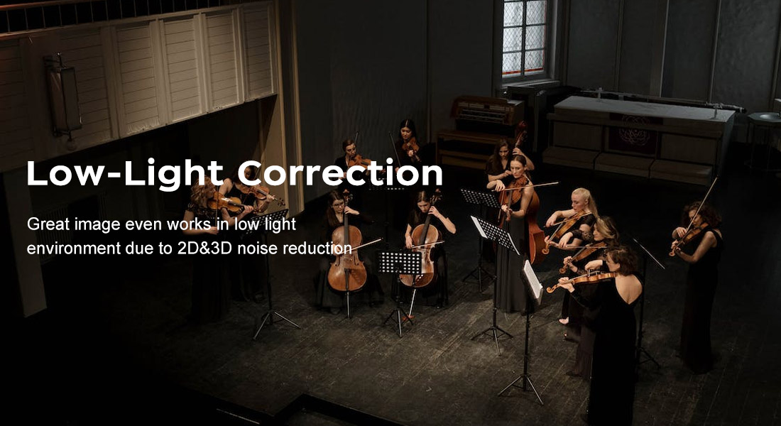 Применение алгоритма 3D-шумоподавления значительно снижает шум изображения. Даже в условиях сверхнизкой освещенности он по-прежнему сохраняет изображение чистым и четким, а SNR изображения составляет 55 дБ.