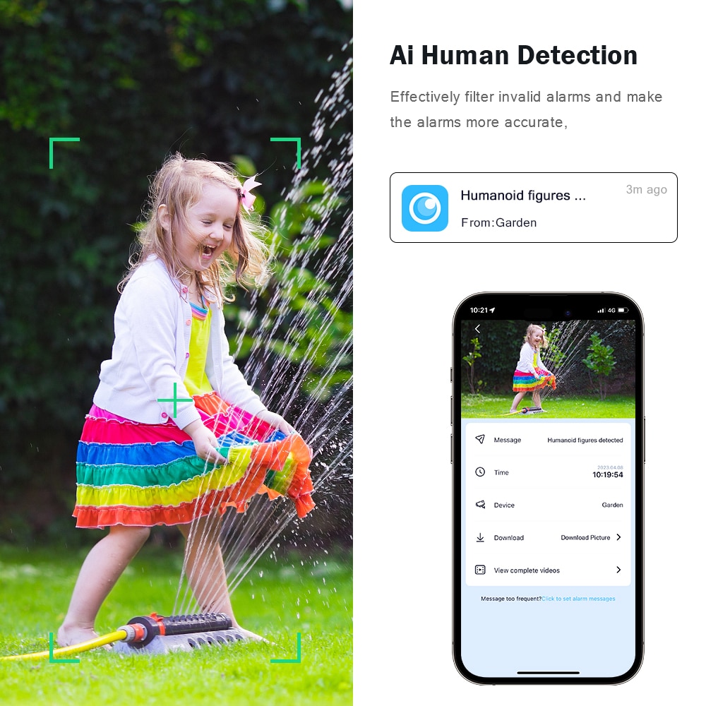 Поворачивается на 355 ° по горизонтали и 90 ° по вертикали. Вы можете управлять им в приложении напрямую, когда захотите и где бы вы ни находились.