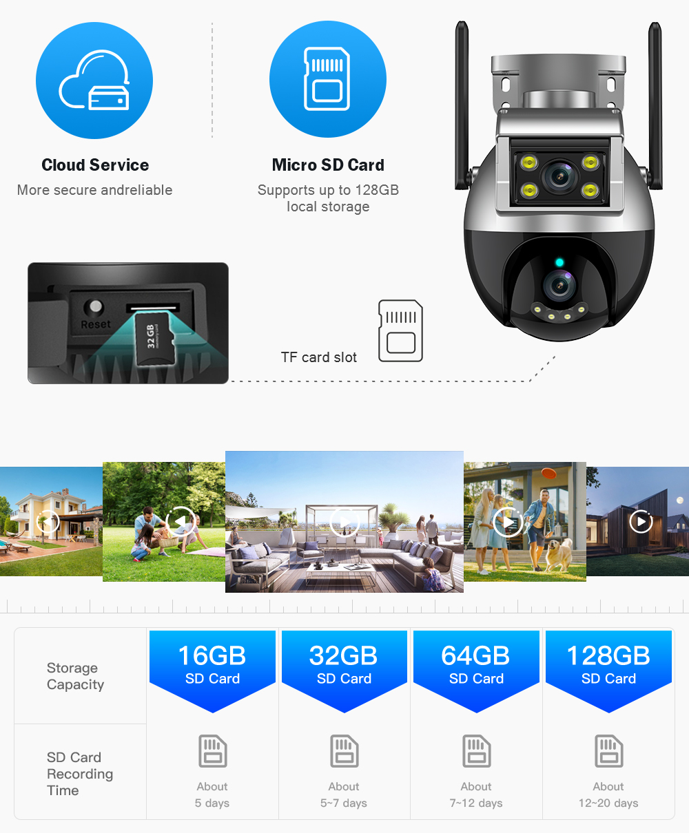 В прошлом месяце Облачное хранилище и максимальная запись SD-карты 128 ГБ, безопасность данных более стабильна.