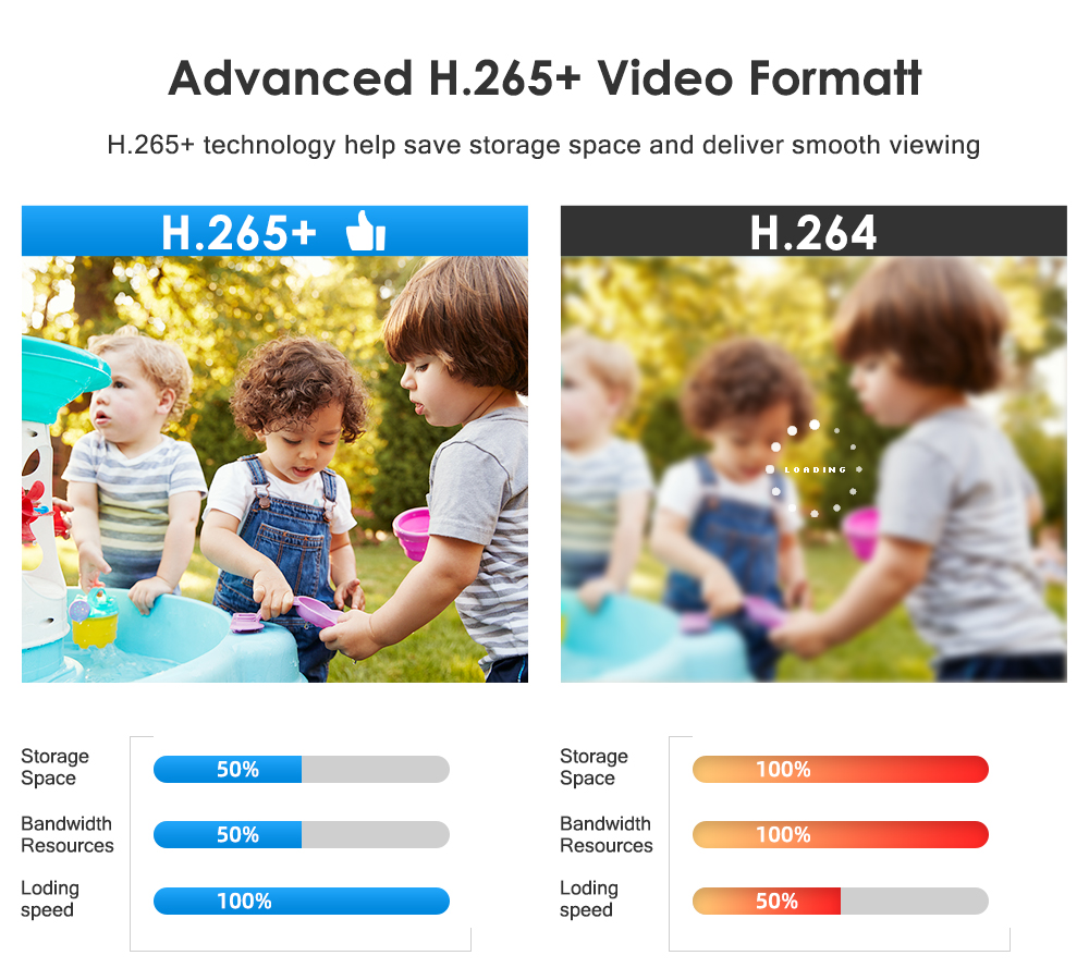 H.265 (HEVC) удваивает эффективность кодирования по сравнению со своим предшественником H.264. Видео H.265 экономит около 50% битрейта при том же качестве кодирования. H.265 нужна только меньшая пропускная способность, более высокая скорость загрузки, более плавное видео, более низкая скорость поклевки, более высокое качество изображения!
