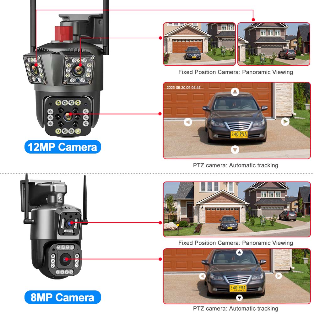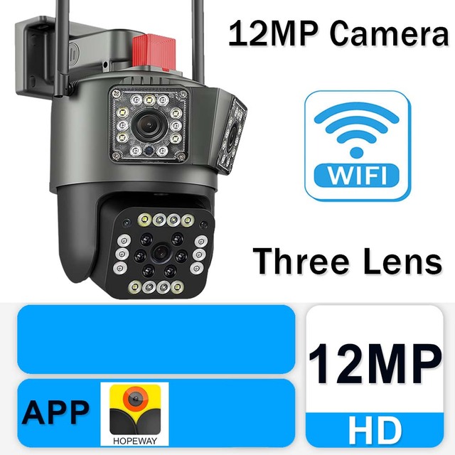 Камера видеонаблюдения 6K 12 Мп WiFi, Беспроводная наружная реклама, 8-кратный зум, Три объектива, Камеры наблюдения Wi-Fi, Обнаружение движения, Защита безопасности, Умный дом, Камера видеонаблюдения, 8-мегапиксельная