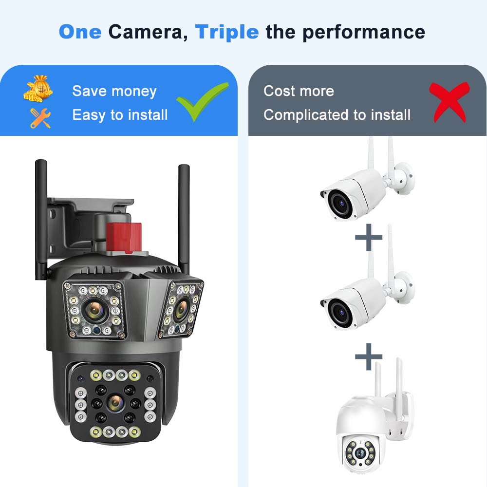* Эта камера 6K такая же, как и три обычные камеры вместе взятые, одна камера на три камеры, что избавляет вас от необходимости устанавливать больше камер.