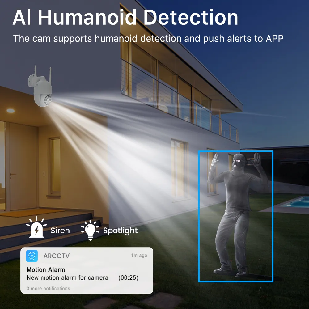 Камера оснащена двигателем PTZ, который позволяет камере иметь функцию автоматического слежения. Включите «функцию автоматического отслеживания» в приложении, камера будет вращаться вместе с движущимся объектом, и когда движущийся объект исчезает на экране камеры, камера вернется в исходное положение.