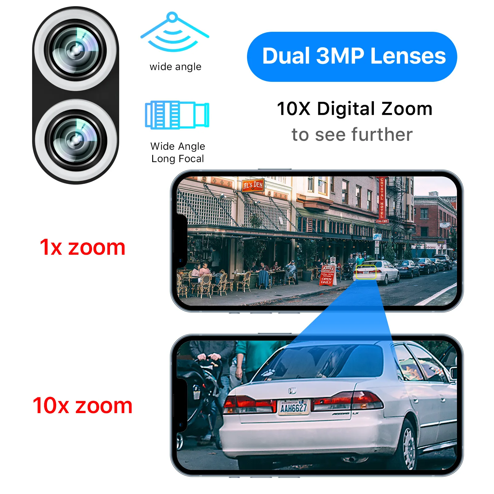 Камера оснащена короткофокусным объективом 3,6 мм и длиннофокусным объективом 8 мм, поддерживает максимальный 10-кратный цифровой зум и четко видит номерной знак на расстоянии 30 м. Поддержка до 4-кратного оптического зума.