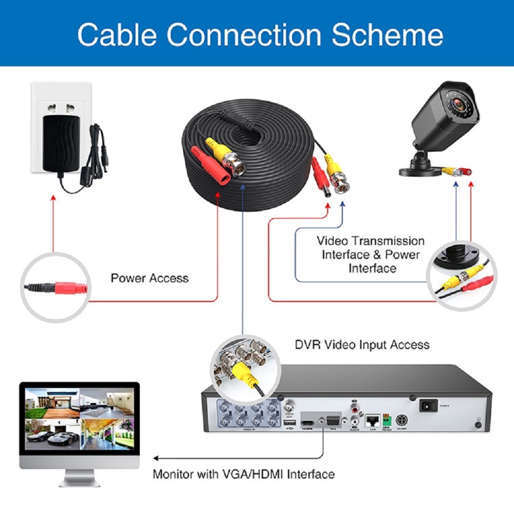 5M/10M/15M/20M/30M/50M CCTV DVR Камера Регистратор Система Видео DC Питание Безопасность Наблюдение BNC Коаксиальный кабель Удлинение