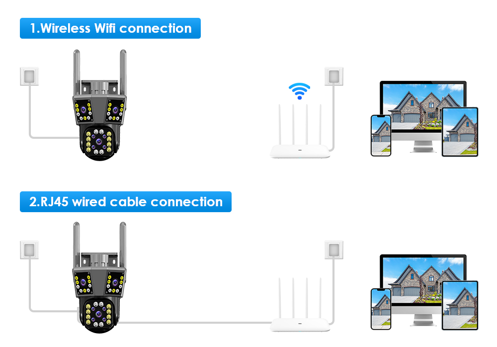 Соединение Wi-Fi можно решить из-за традиционной проблемы с проводкой камеры, легко установить в то место, которое вы хотите установить.
