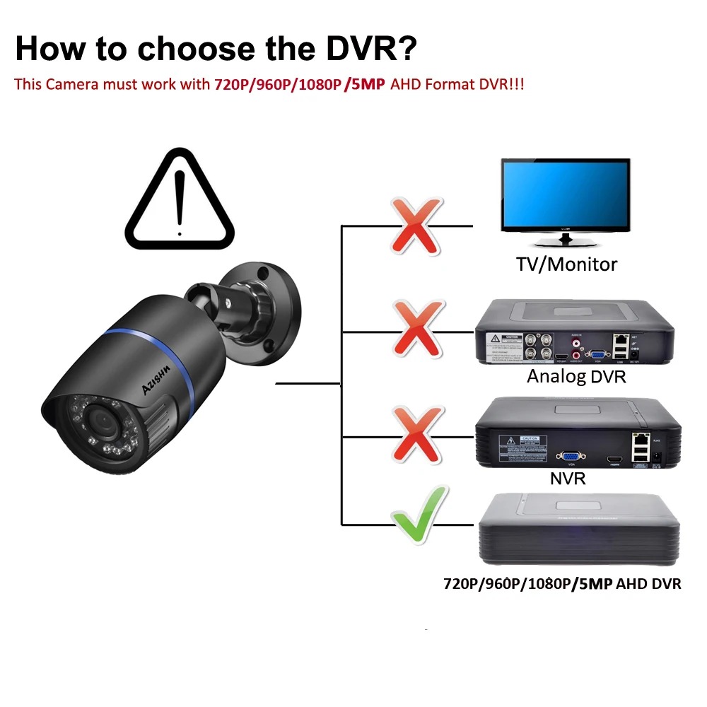Примечание: если вы покупаете камеру AHD 5MP, убедитесь, что ваш DVR-AHD 5MP DVR.