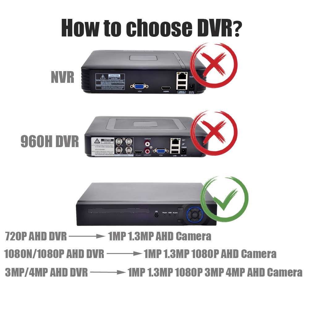2. Убедитесь, что у вас есть видеорегистратор AHD для камер AHD. Или вы не сможете просматривать или записывать видео.