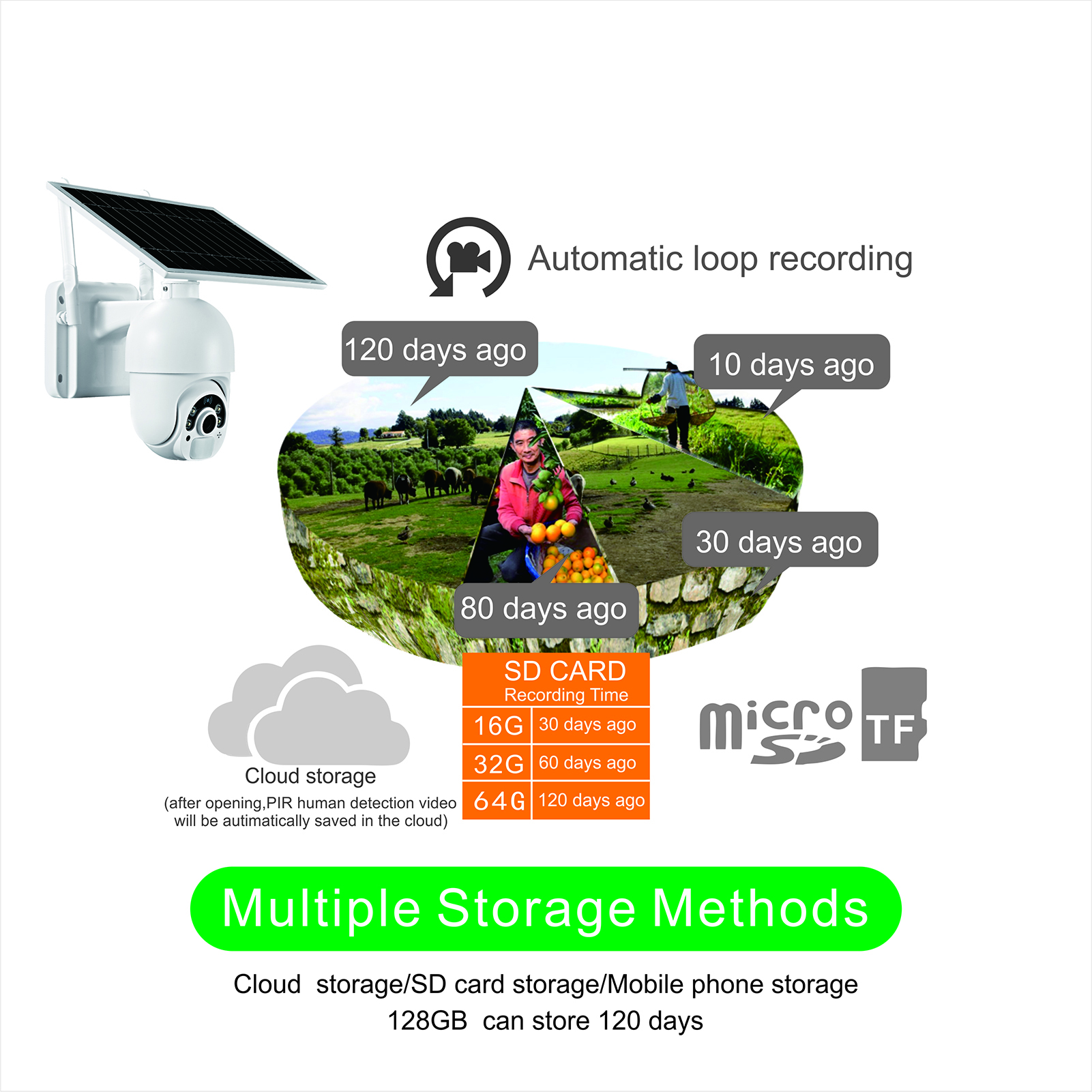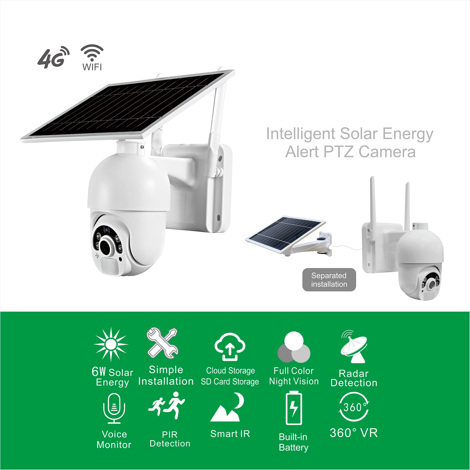 ➀Solar Универсальная панель регулировки, встроенный супер емкость батареи ➁ ультра-низкое энергопотребление в режиме ожидания, быстрый wake up в 0,2 секунд