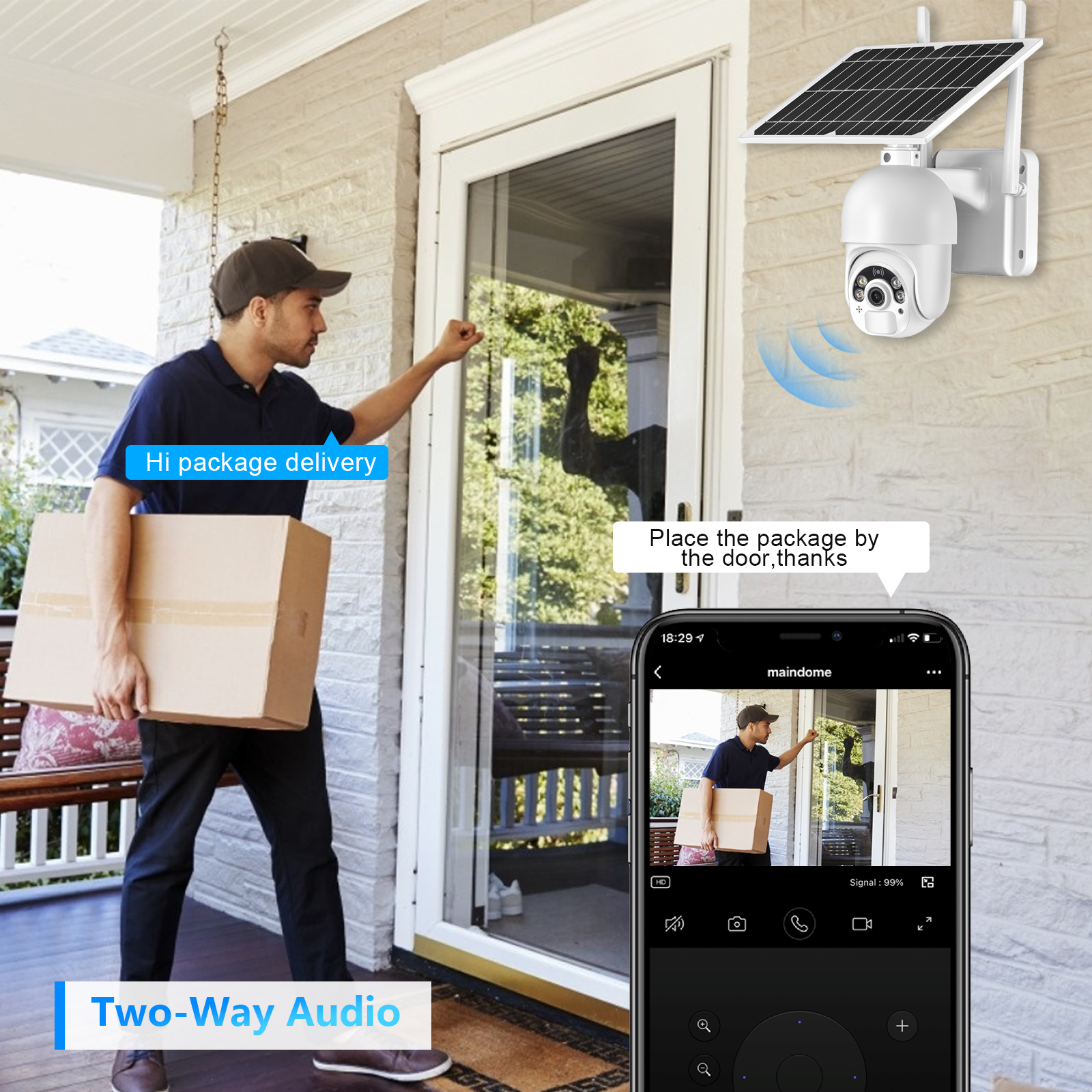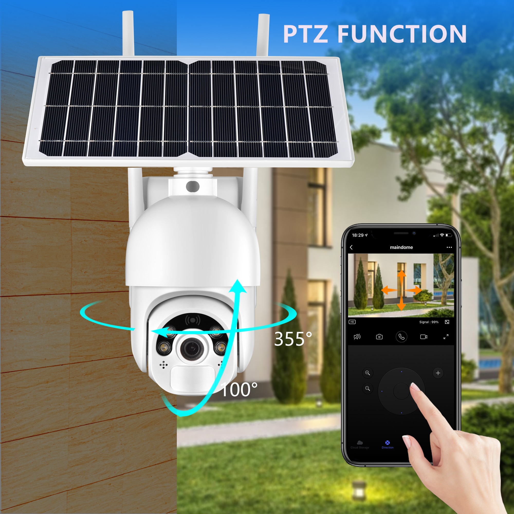 Gadinan Солнечная PTZ камера вращается с 355 ° панорамирование и 100 ° наклон, этот creat 360 ° панорамный вид. Вы можете управлять им через мобильное приложение и получать широкий обзор на каждом дюйме вашего дома.