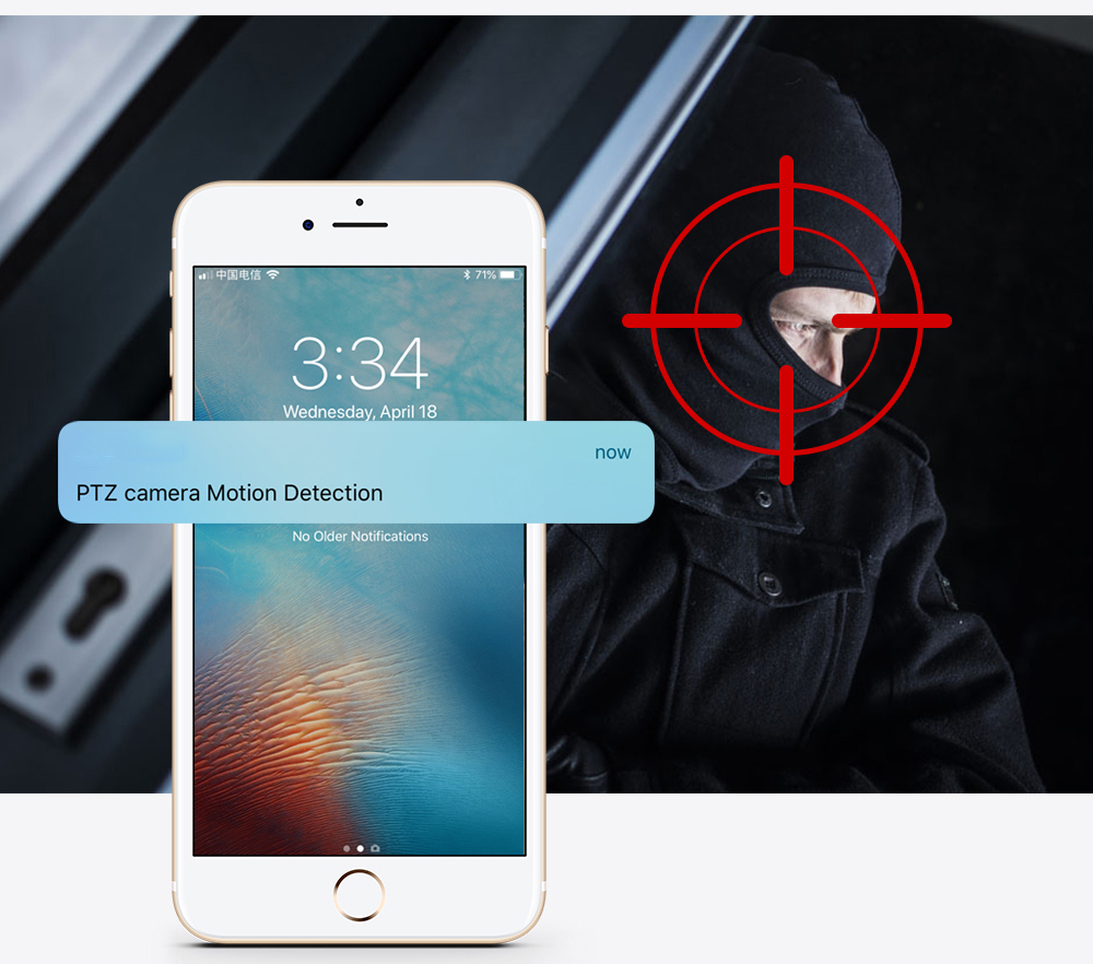 Любое подозрительное движение, брошенное в глаз камеры, будет обнаружено и записано, и ворам и грабителям негде спрятаться. В то же время вы будете получать мгновенные сигналы тревоги APP на свои интеллектуальные устройства, где бы вы ни находились.