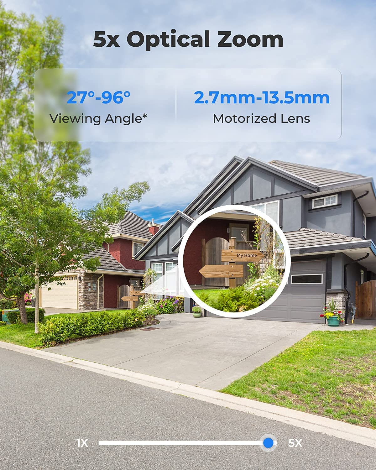 5-кратный Оптический моторизованный зум позволяет увеличить масштаб, чтобы увидеть больше деталей далеких объектов без ущерба для качества изображения, или уменьшить масштаб, чтобы получить более широкий и крупный обзор (355 ° ~ 100 °). Управляйте 5-кратным зумом, вращающимся через ПК с сетевым видеорегистратором и смартфон.