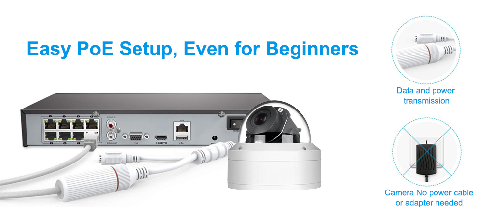 Power Over Ethernet (PoE)-это передовая технология, которая позволяет использовать один сетевой кабель как для передачи видео, так и для передачи энергии, что упрощает установку! Кроме того, благодаря PoE вы никогда не будете беспокоиться об утечках электричества!