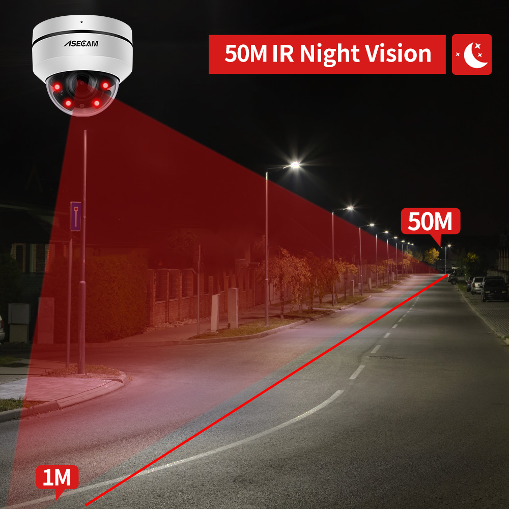 Камера наблюдения PTZ оснащена автоматическими ИК-светодиодами для ночного видения на расстоянии до 50 метров. Обеспечивает отличное ночное видение для камеры
