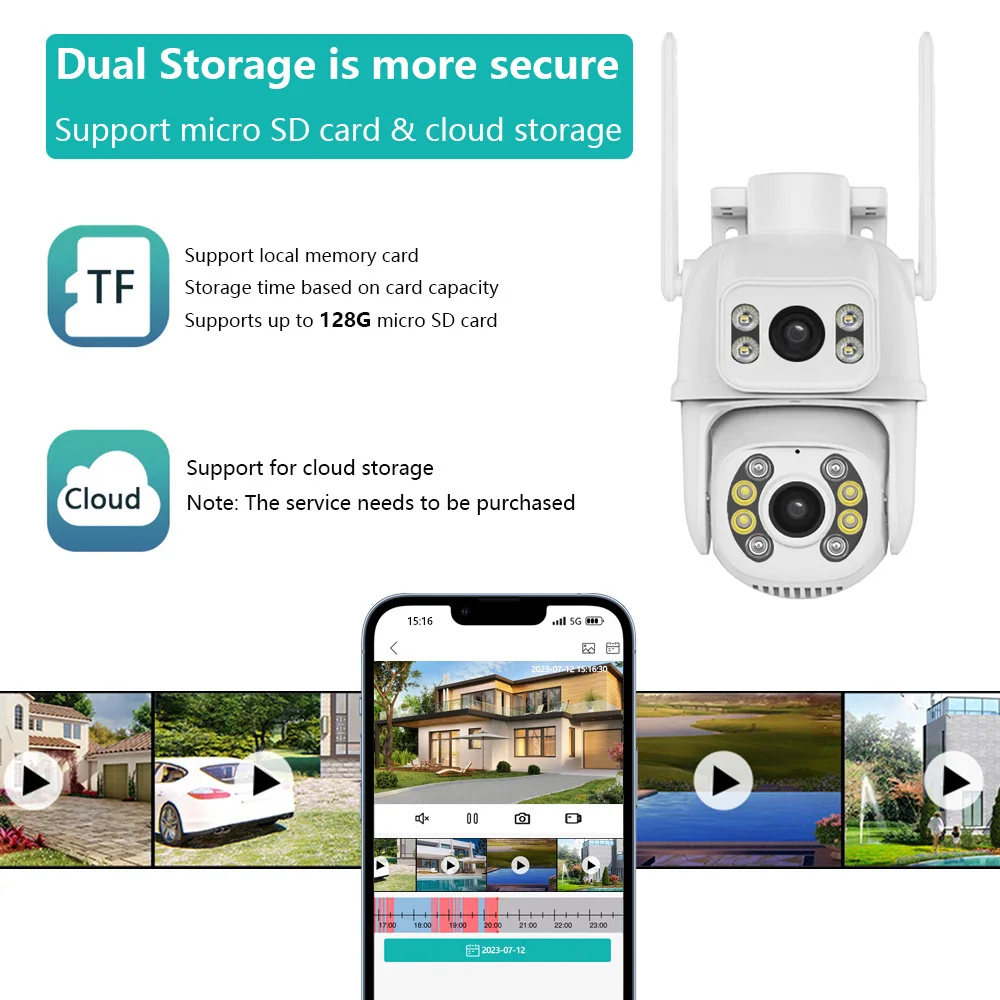 Вы можете применить его в нескольких местах, таких как двор, магазин или гараж, и сохранять видео на карту micro SD (до 128 ГБ) или в облако по вашему выбору.