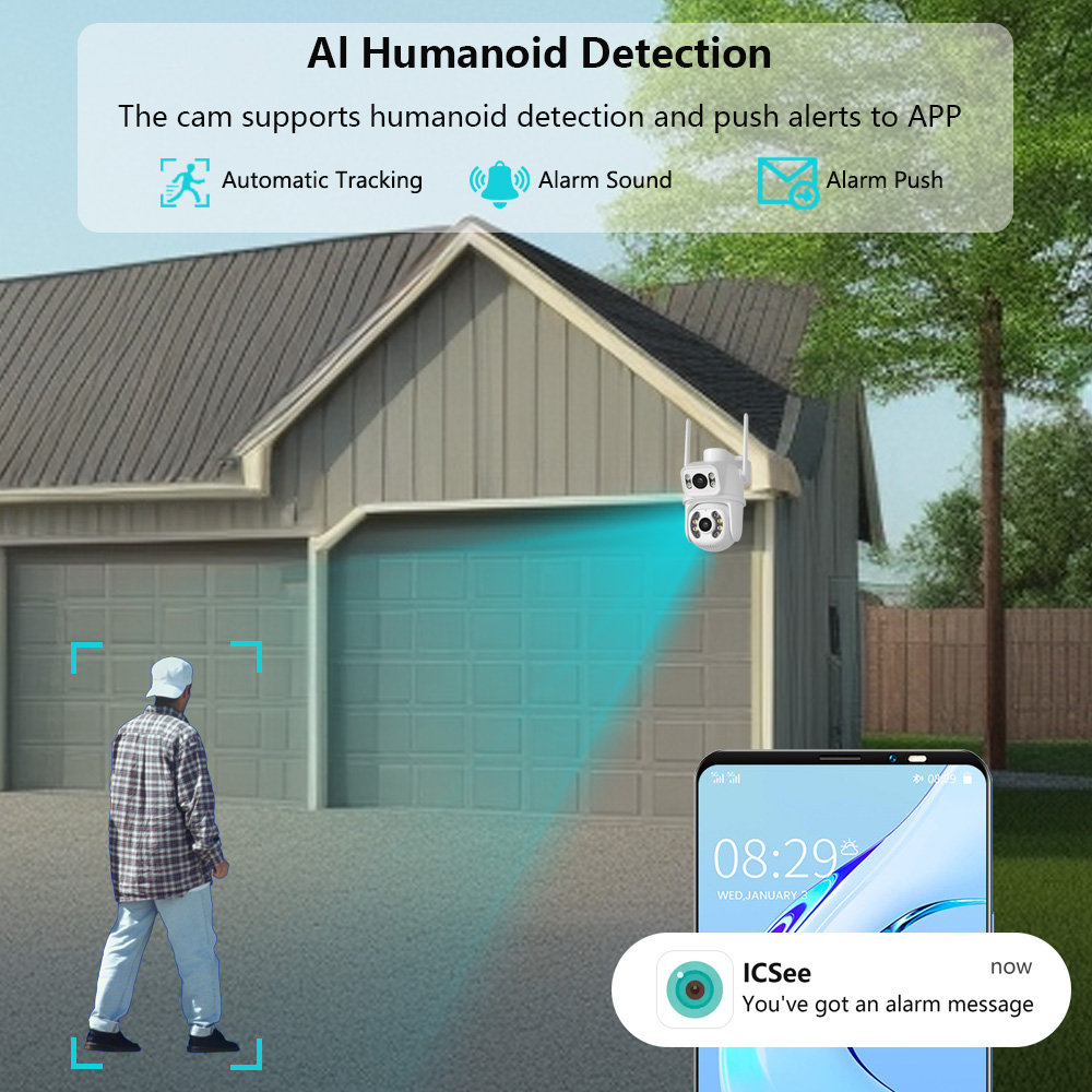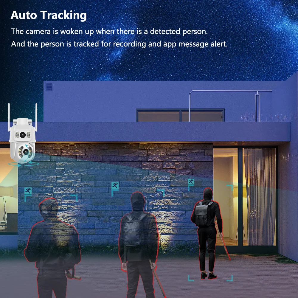 Благодаря обнаружению гуманоидов AI эта камера видеонаблюдения может различать людей и животных, уменьшая на 95% ложные срабатывания, вызванные дождем, листьями, камера будет автоматически отслеживать и отправлять оповещения по электронной почте или уведомления на ваши смартфоны (iOS, Android).